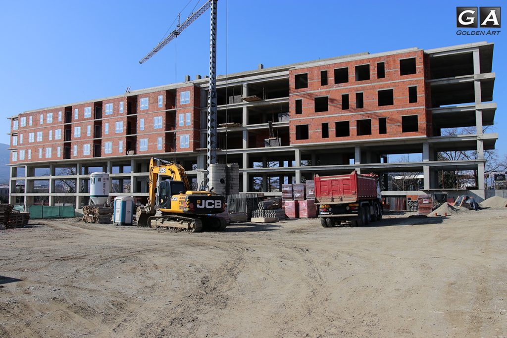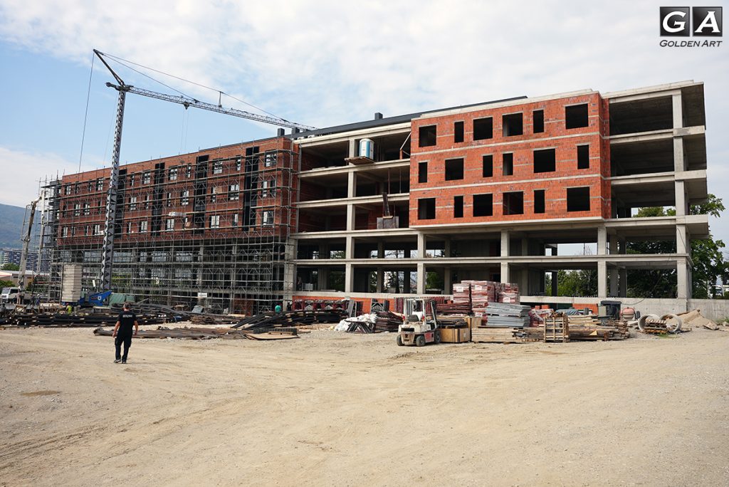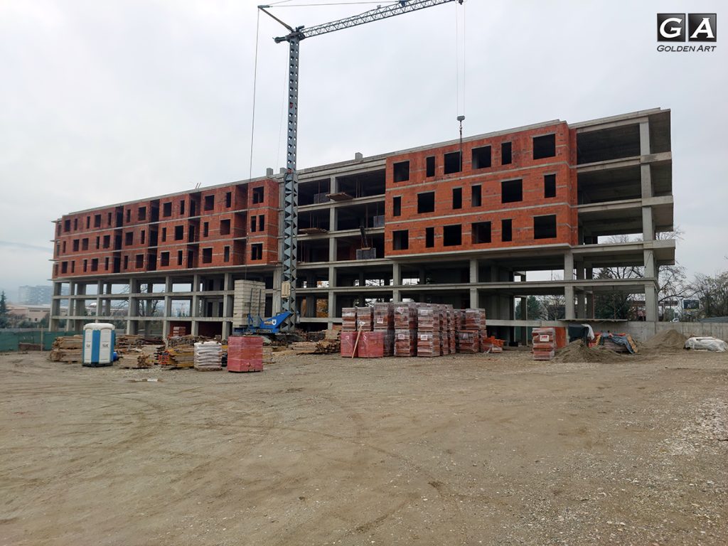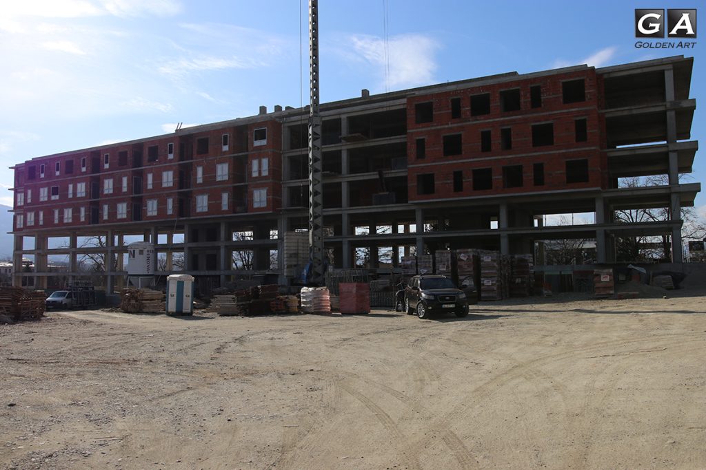На објектот се работи активно на повеќе позиции. На фасадата се поставуваат плочки, додека пак на 1 кат се отпочна со поставување на плочки во кујни и купатила во станови. На 2 кат се поставуваат гипсани облоги во станови. Направено е испитување на водоводна инсталација за довод на вода. Се отпочна и со поставување на инсталација за греење и ладење во станови.
