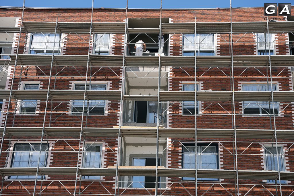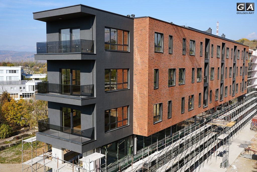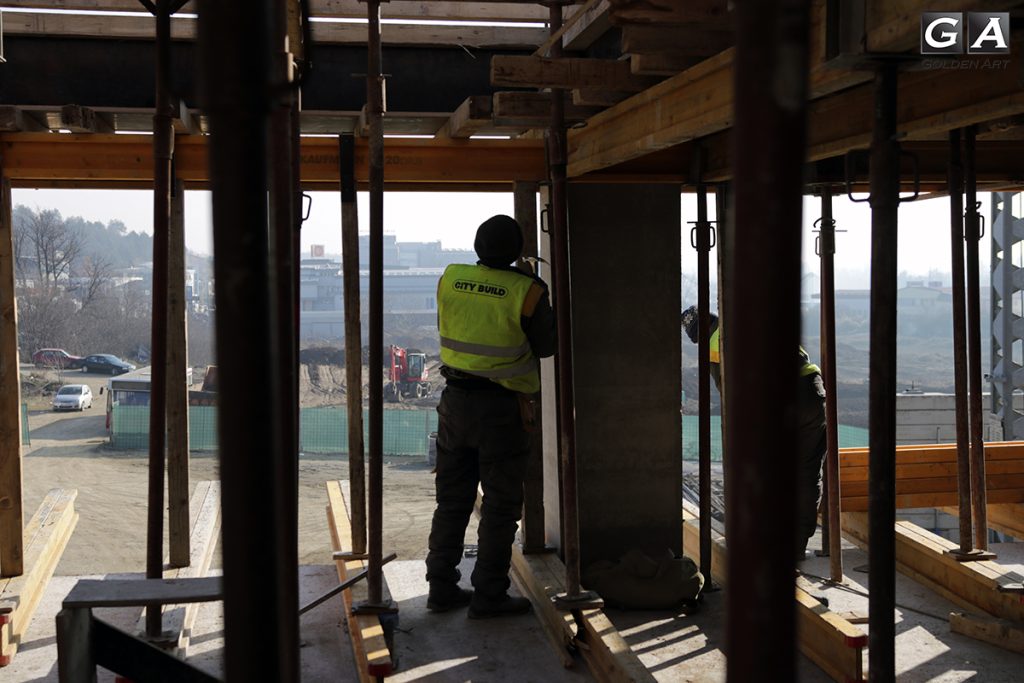 На објектот се работи активно на повеќе позиции. На фасадата се поставуваат плочки, додека пак на 1 кат се отпочна со поставување на гипс облоги во ходници, а се прави и припрема за поставување на цементна кошулица во станови. На 2 кат се поставуваат плочки во кујни и купатила, а се работи и на поставување на инсталација за греење и ладење во станови.