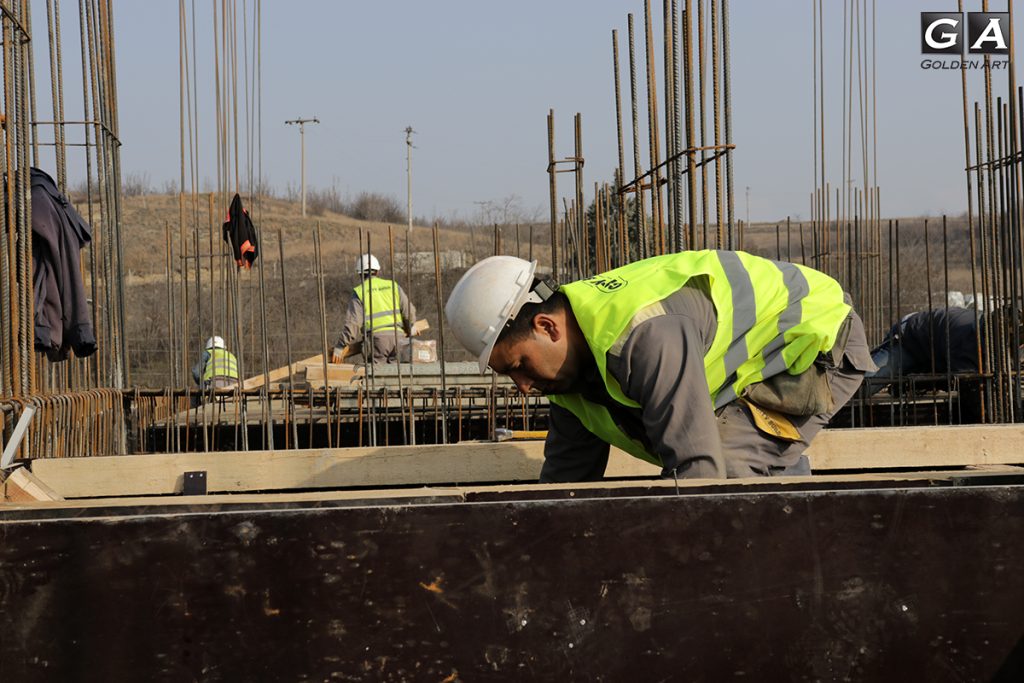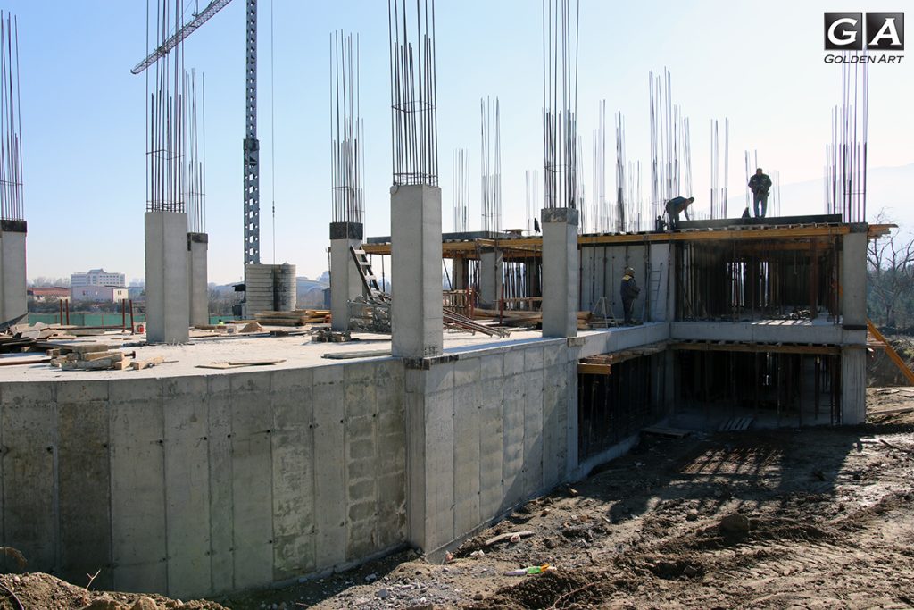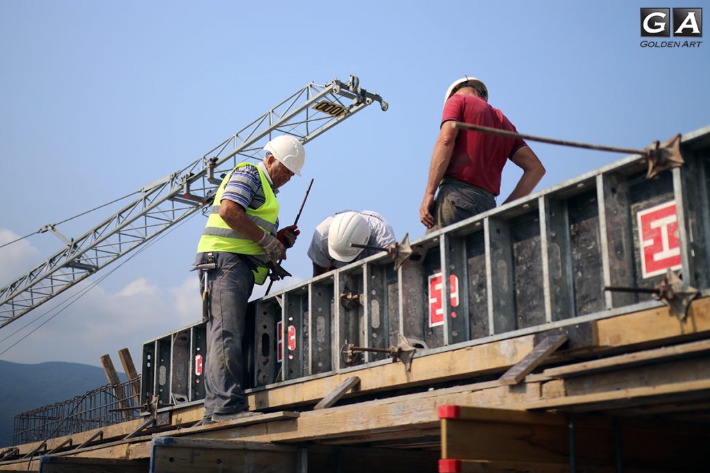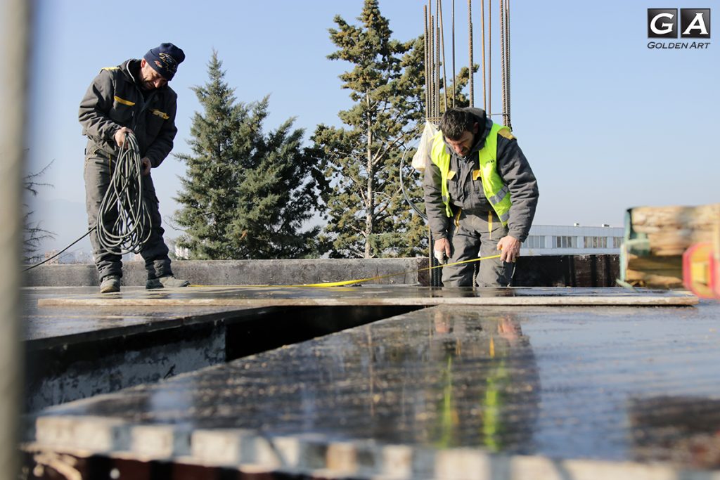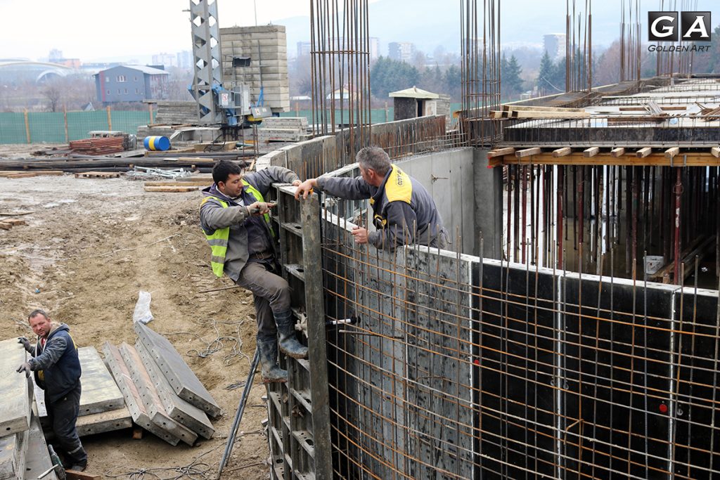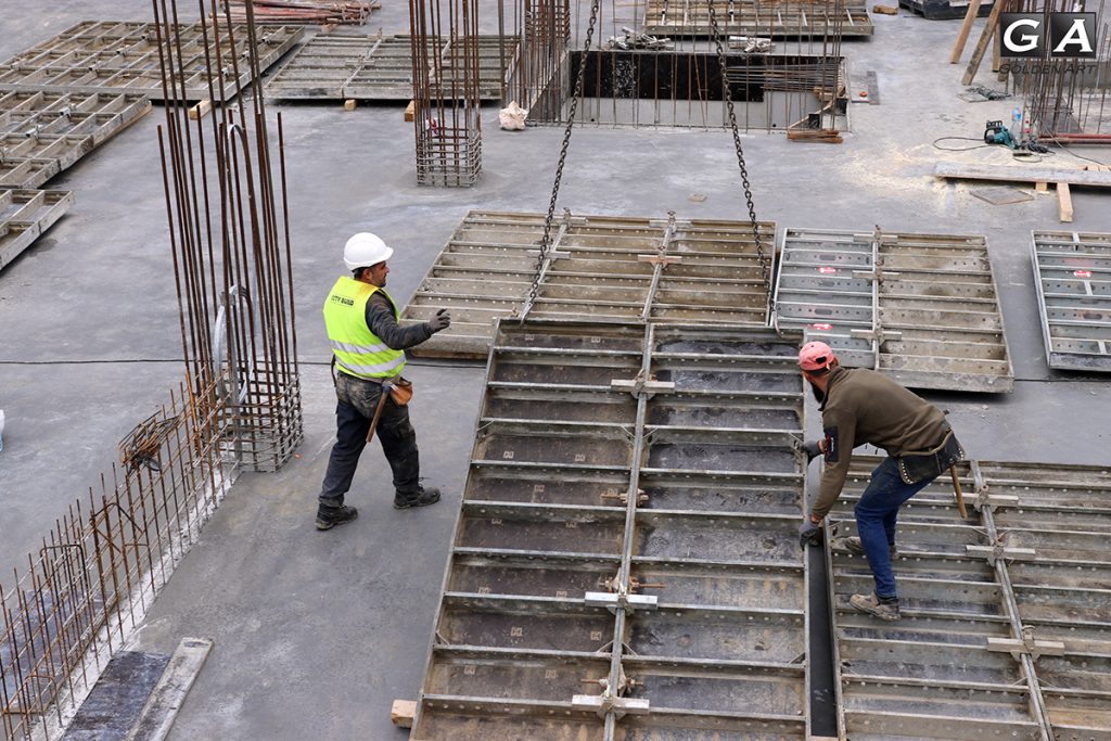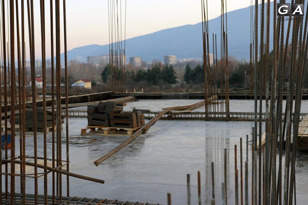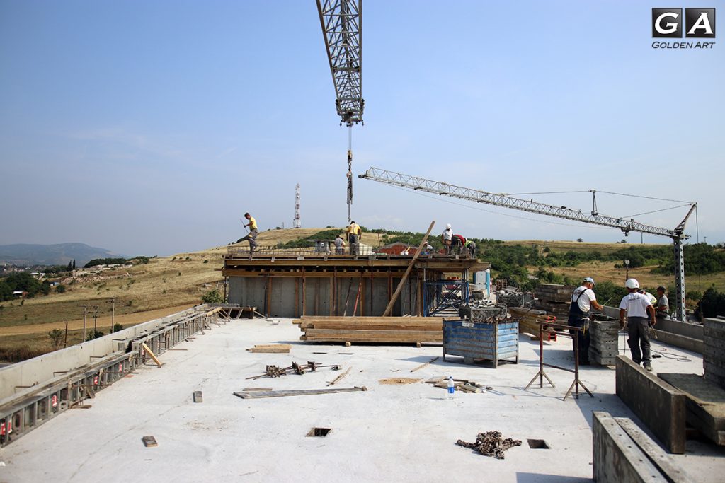 На објектот се работи на две позиции, се прави изработка на кров на ламела 2, додека на ламела 1 се прават парапети на платформа 600.
