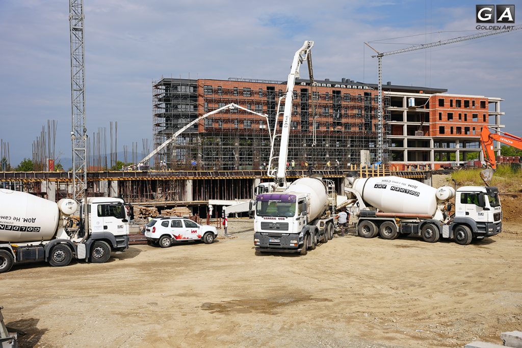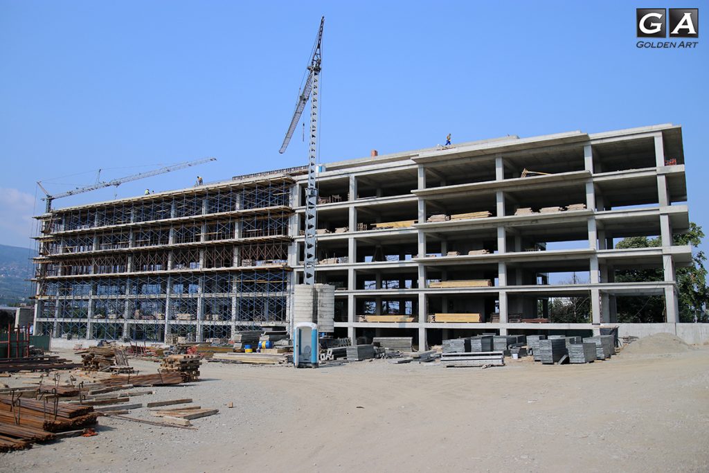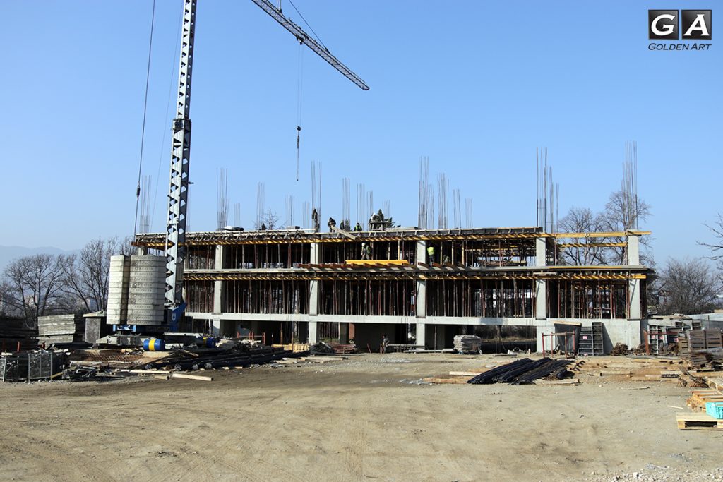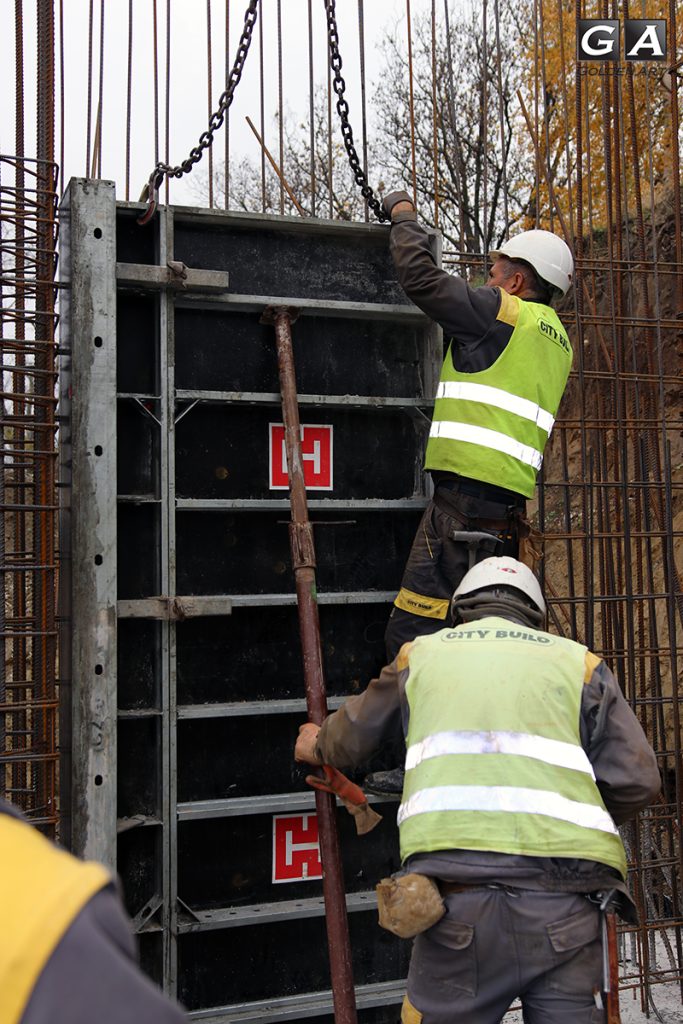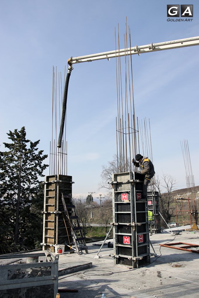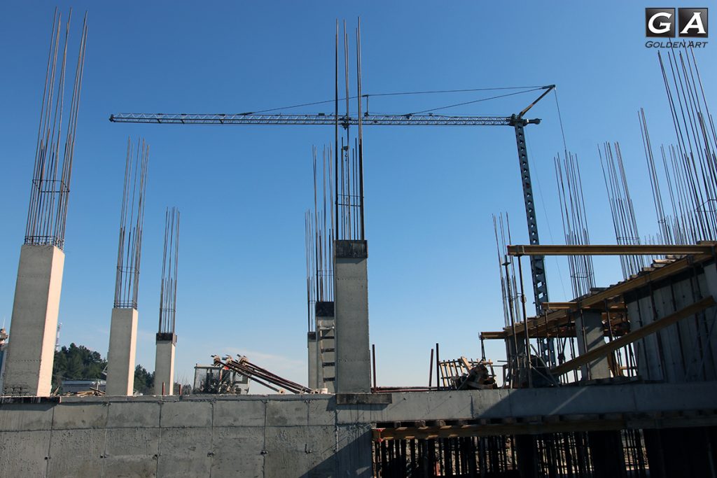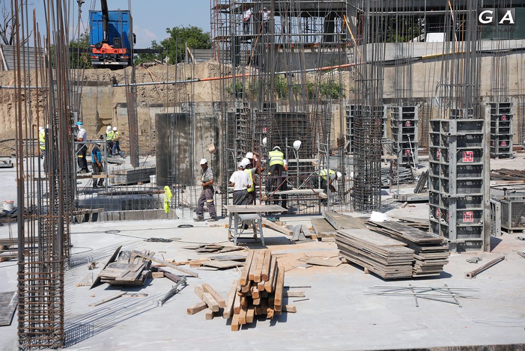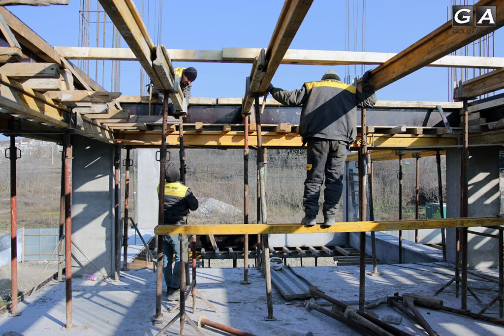 На објектот се работи на две позиции, се прави изработка на кров на ламела 2, додека на ламела 1 се прават парапети на платформа 600.