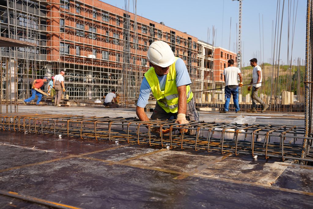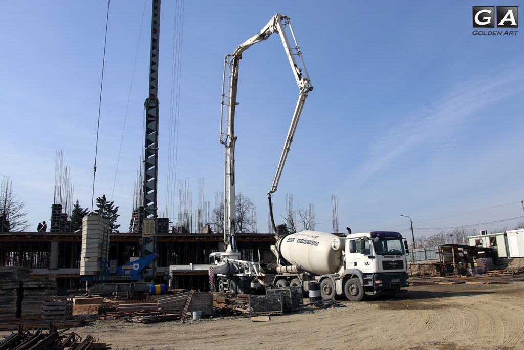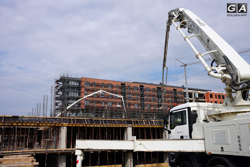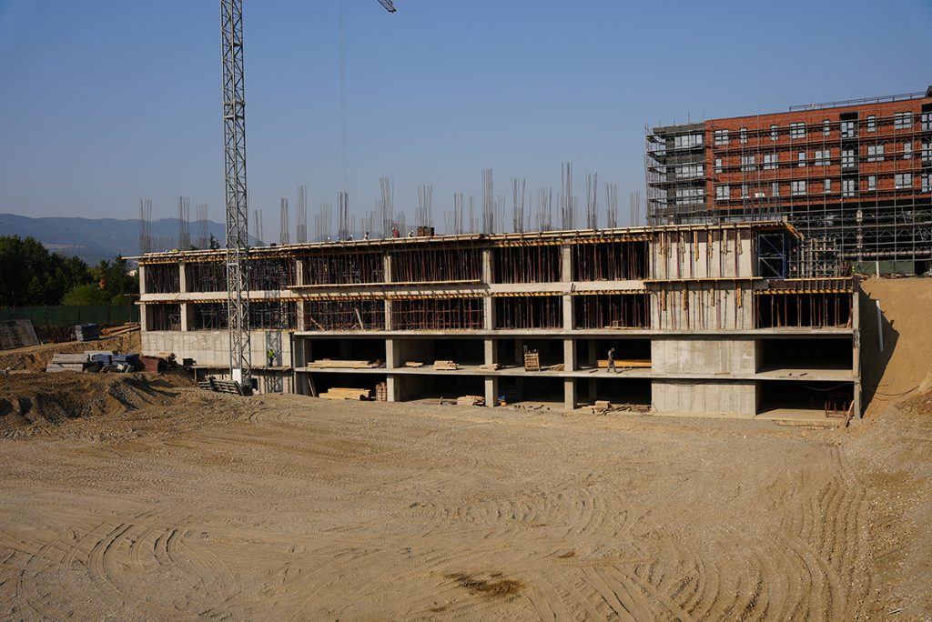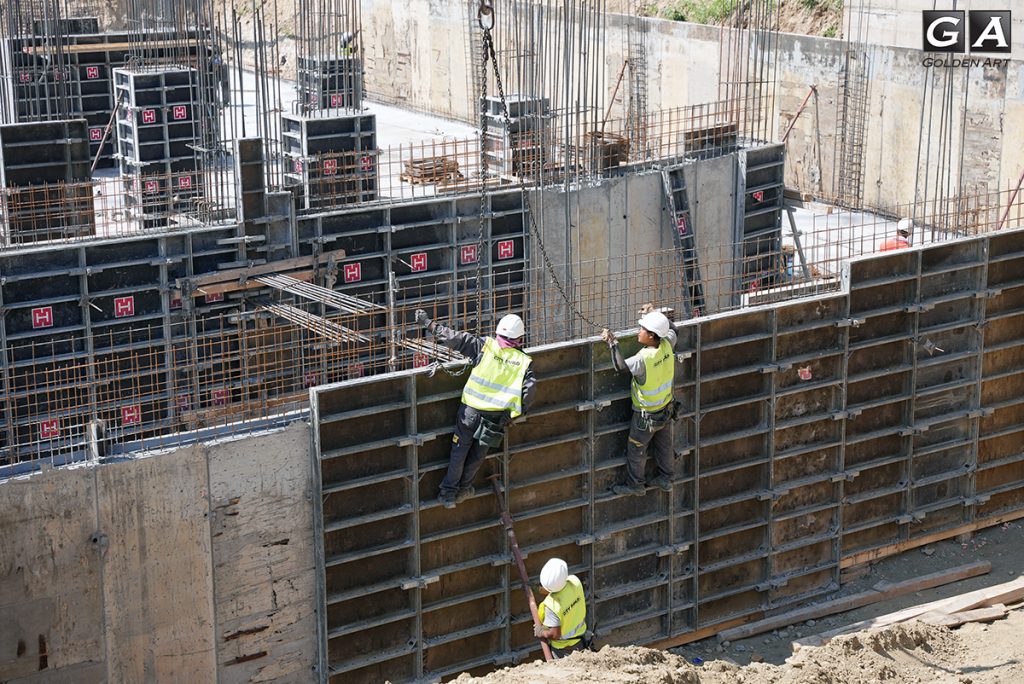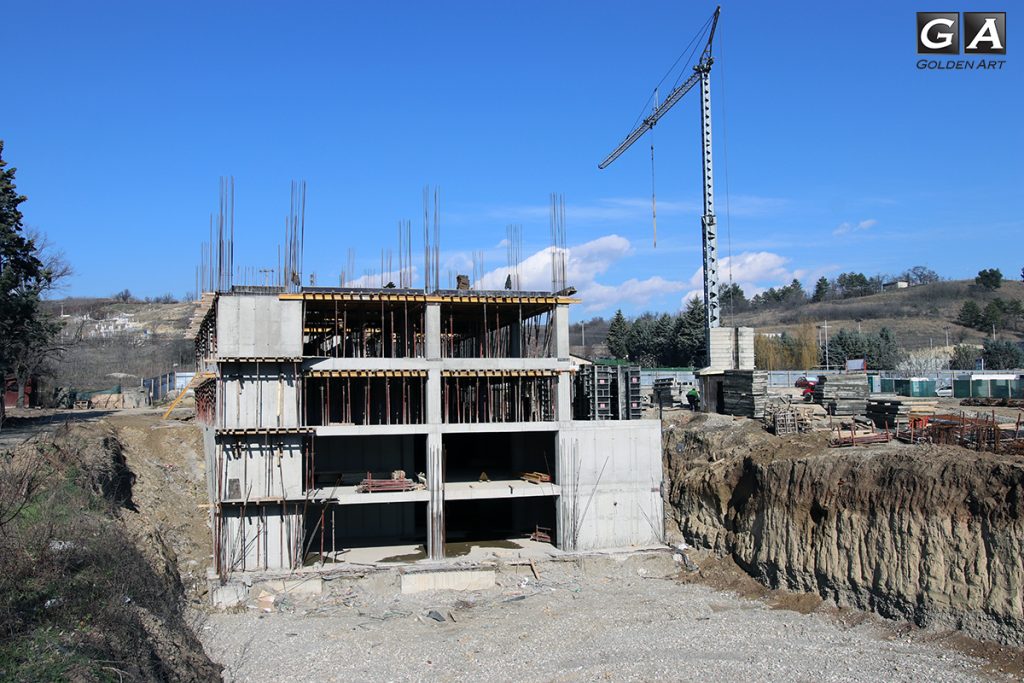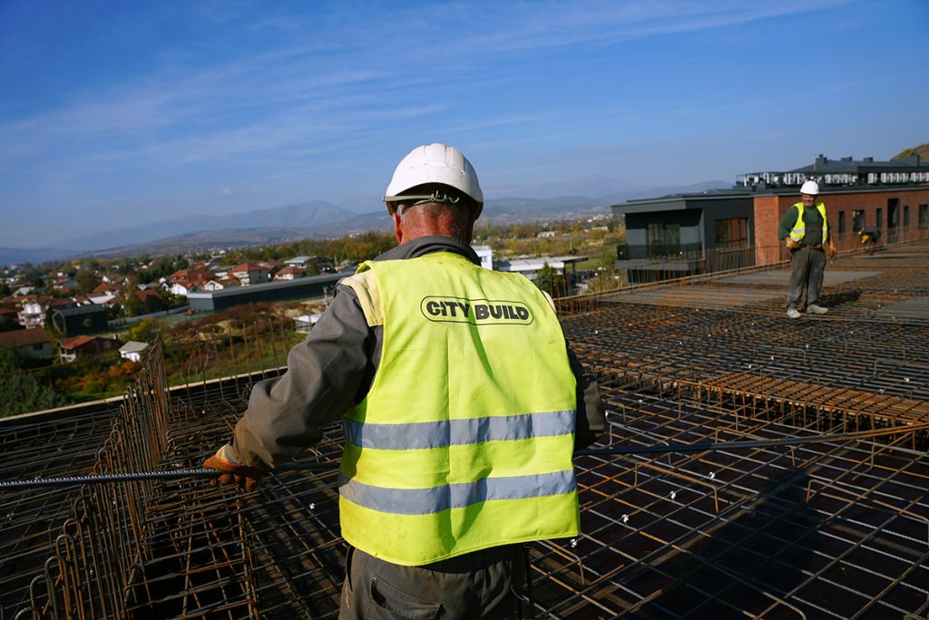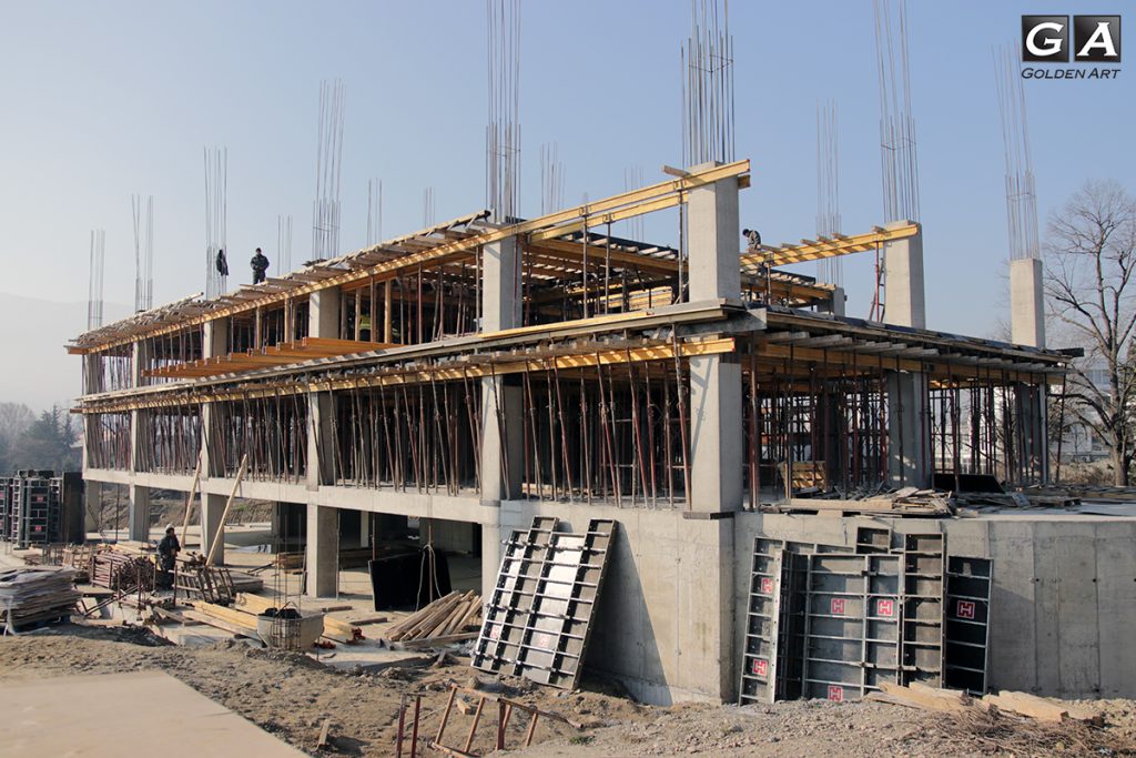 На објектот се работи на две позиции, се прави изработка на кров на ламела 2, додека на ламела 1 се прават парапети на платформа 600.