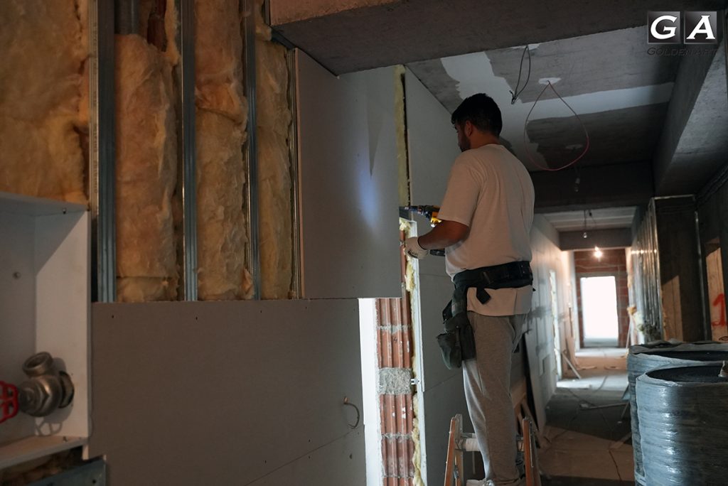 На објектот се работи активно на повеќе позиции. Се работи на поставување на гипсани облоги во ходници, се отпочна со бандажирање на гипс облоги во станови, како и глетовање на ѕидови. На 3 кат се поставуваат плочки во станови, а се изработува и цементна кошулица.