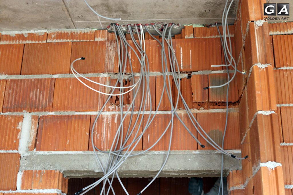 Спроведување на електрична инсталација на 3 кат. Нанесување на цементен малтер во кујни и купатила на 2 кат. Поставување на прозори на 3 кат.