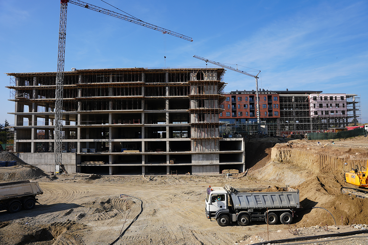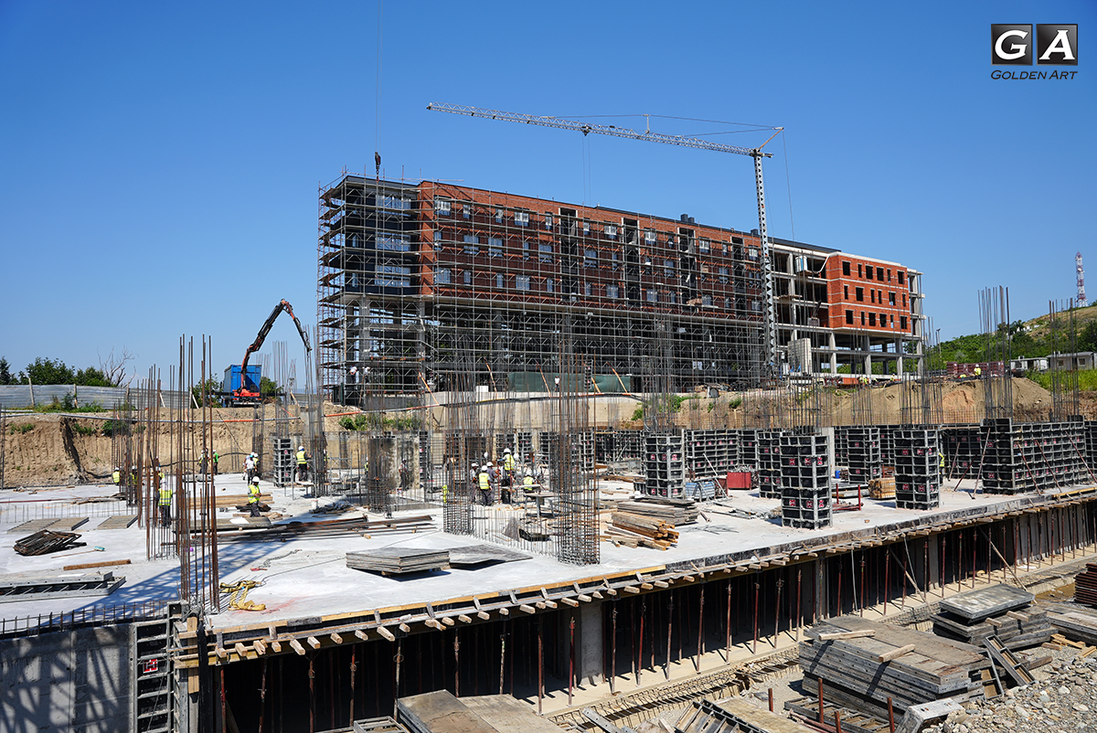 На објектот се работи активно на повеќе позиции. На фасадата се поставуваат плочки, додека пак на 1 кат се отпочна со поставување на плочки во кујни и купатила во станови. На 2 кат се поставуваат гипсани облоги во станови. Направено е испитување на водоводна инсталација за довод на вода. Се отпочна и со поставување на инсталација за греење и ладење во станови.