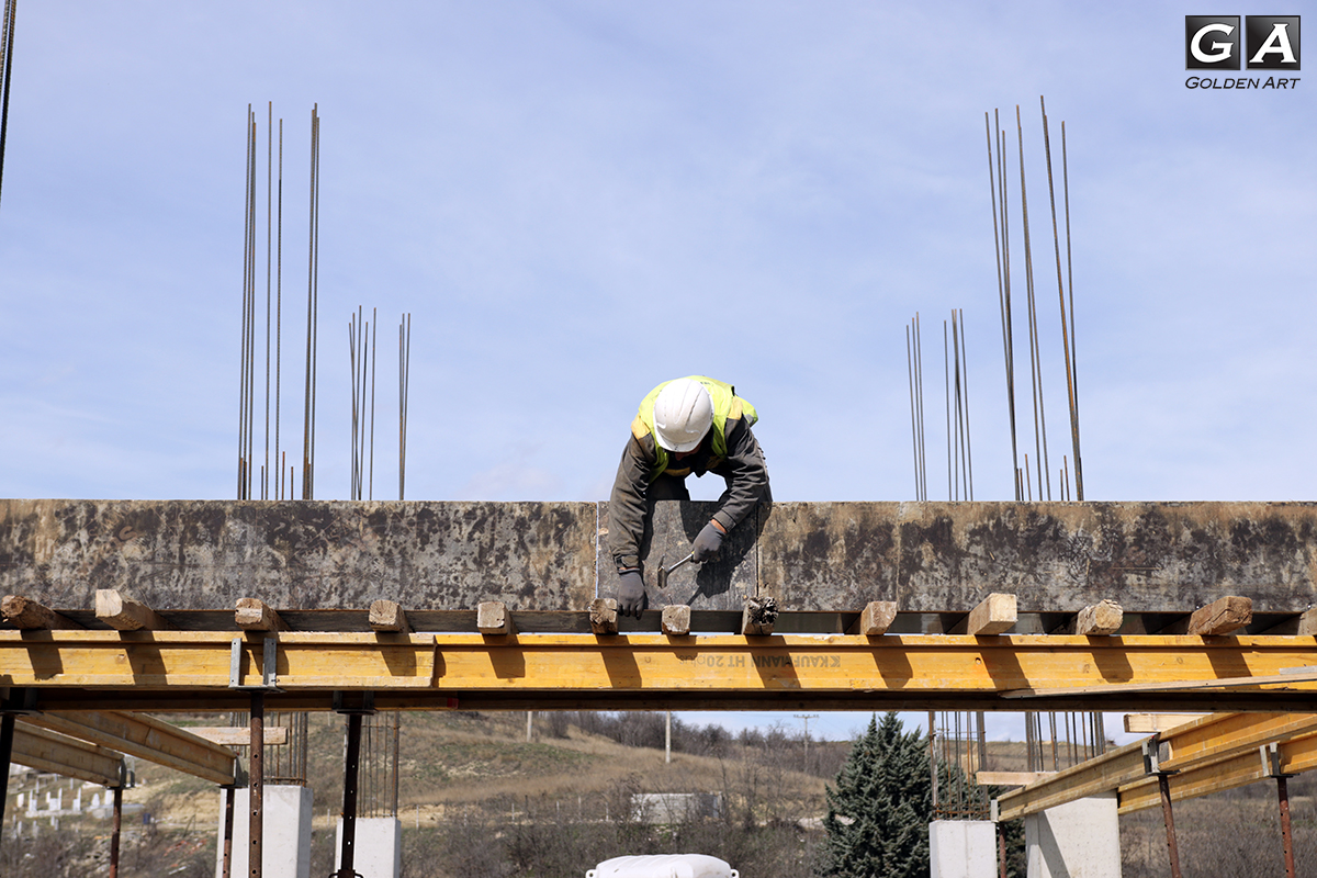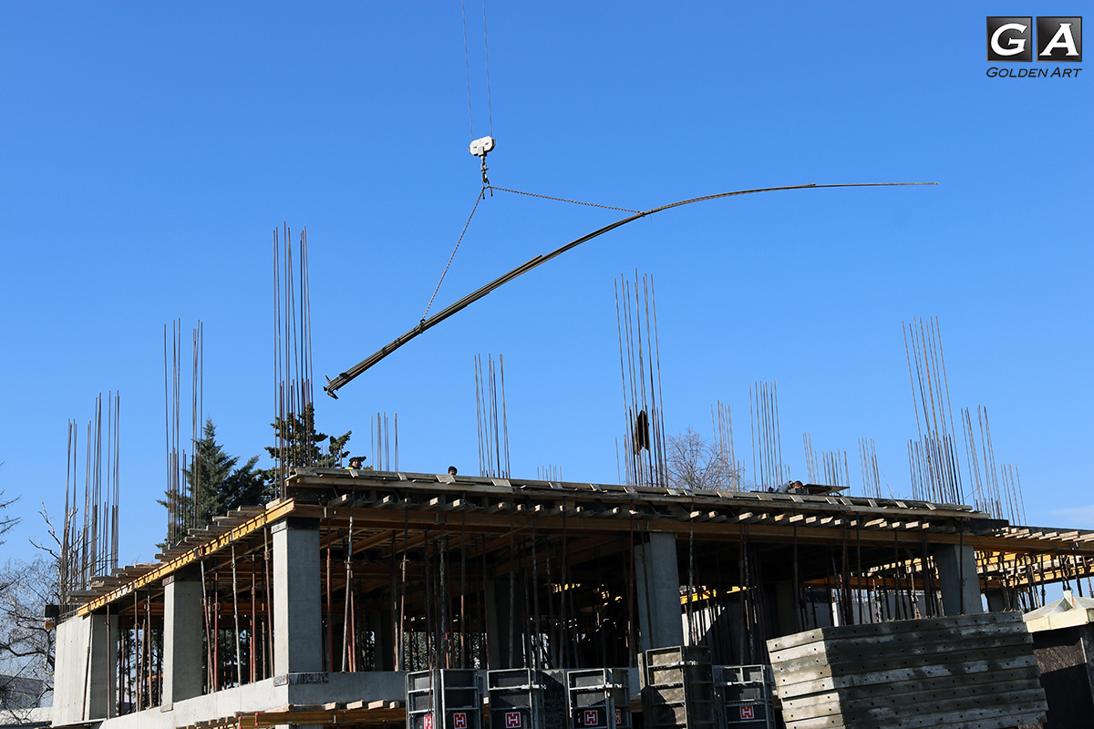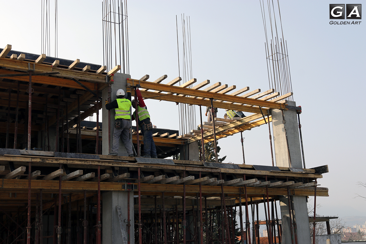 На објектот се работи на две позиции, се прави изработка на кров на ламела 2, додека на ламела 1 се прават парапети на платформа 600.