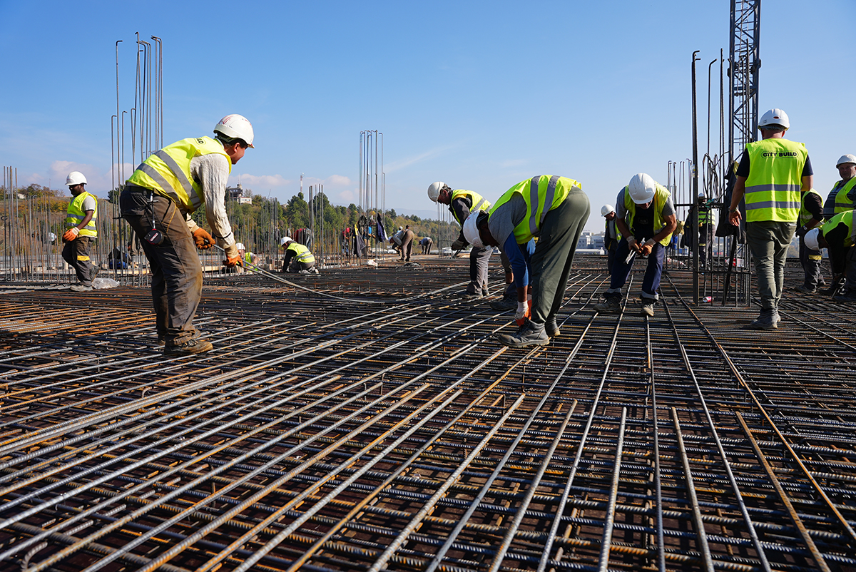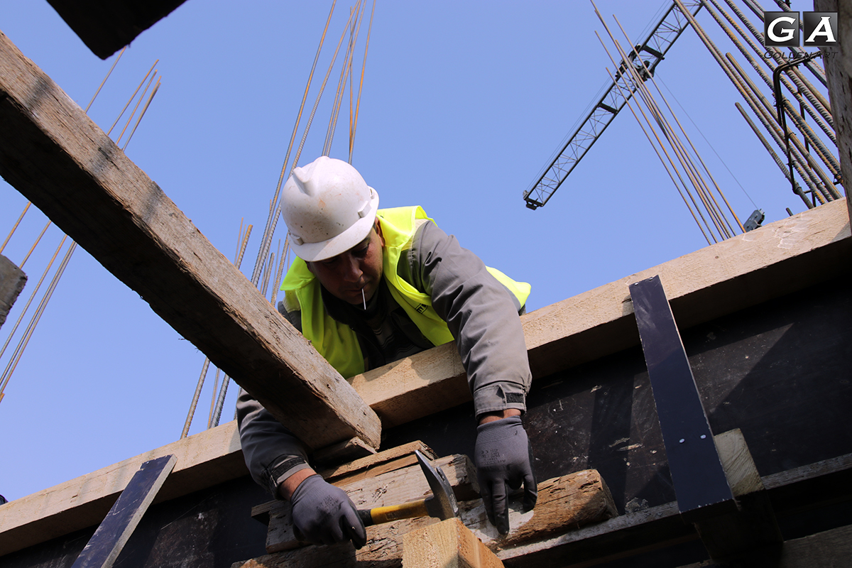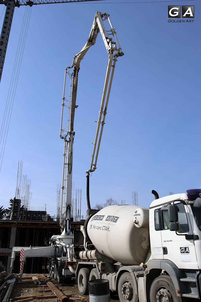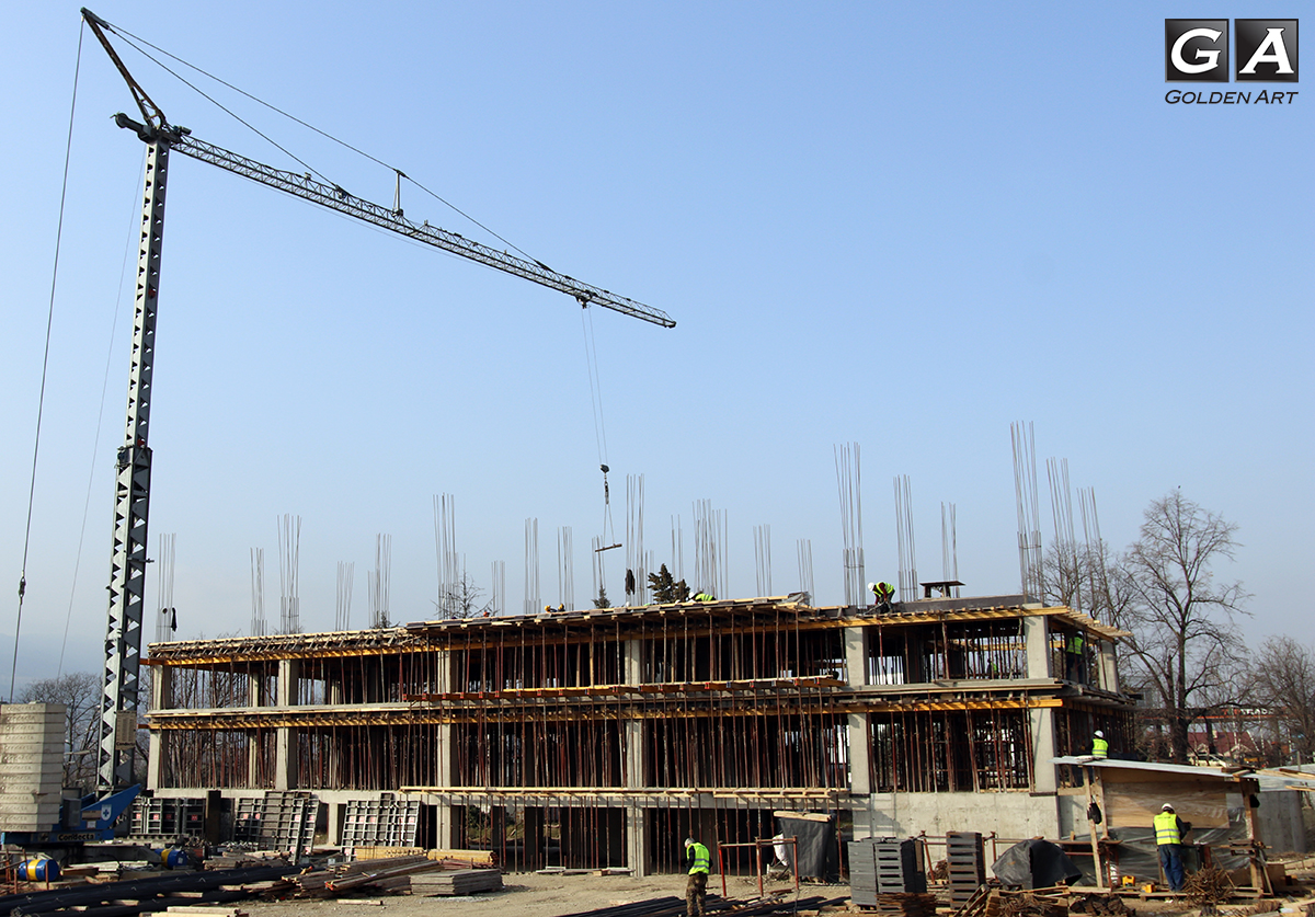 На објектот се работи на две позиции, се прави изработка на кров на ламела 2, додека на ламела 1 се прават парапети на платформа 600.