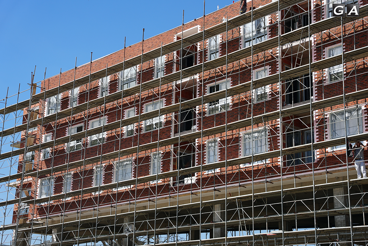 На објектот се работи активно на повеќе позиции. На фасадата се поставуваат плочки, додека пак на 1 кат се отпочна со поставување на гипс облоги во ходници, а се прави и припрема за поставување на цементна кошулица во станови. На 2 кат се поставуваат плочки во кујни и купатила, а се работи и на поставување на инсталација за греење и ладење во станови.
