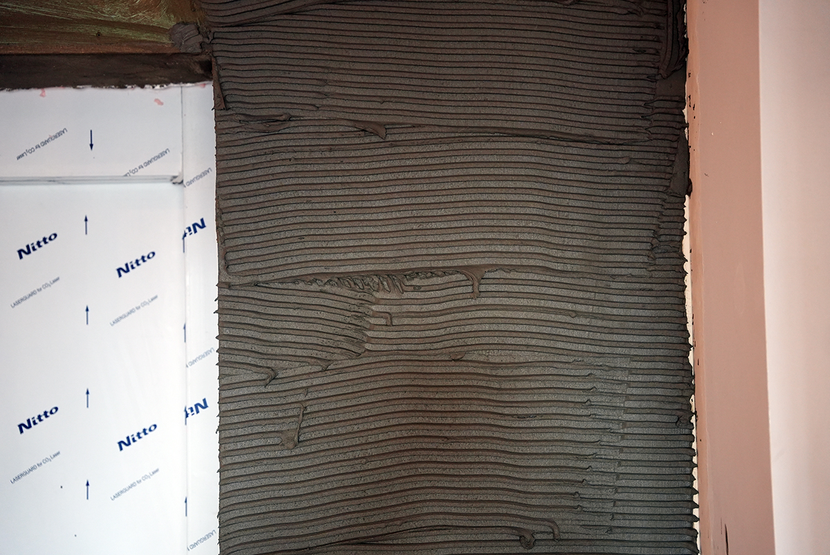 Нанесување на гипсан малтер МП75 на 1 кат. Комплетирано нанесување цементен малтер во кујни и купатила. Комплетирано поставување на прозори.
