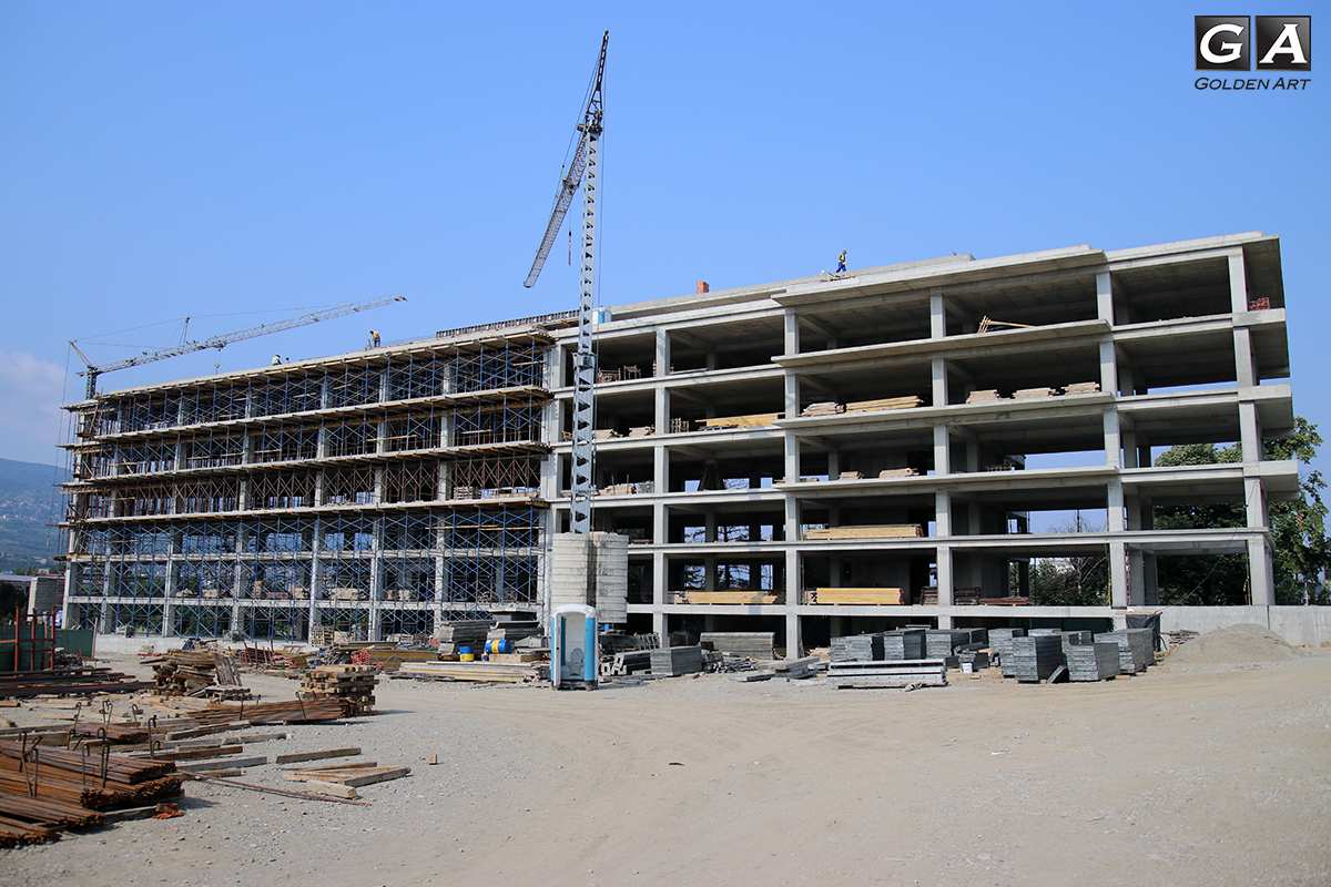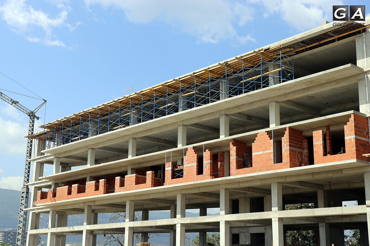 На објектот се работи активно на повеќе позиции. Со поставување на плочки сме во завршна фаза на последниот кат, ја комплетиравме цементната кошулица, додека на 1 и 2 кат се работи на глетовање на ѕидови и плафони.